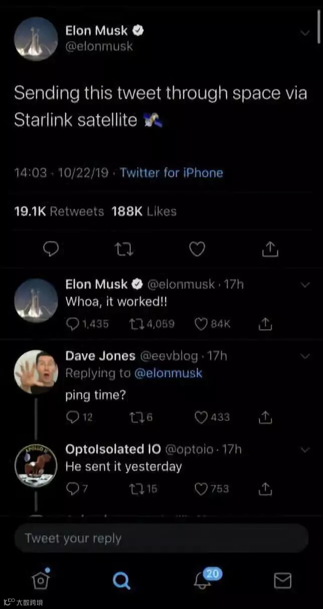 据外媒报道,近日,SpaceX CEO马斯克通过Starlink卫星发送了一条推特,Starlink卫星为马斯克卫星互联网计划中的重要一环。马斯克曾表示,若卫星互联网计划中的“全球通信系统”系统上线,Starlink则有望为世界各地提供低成本的宽带互联网。