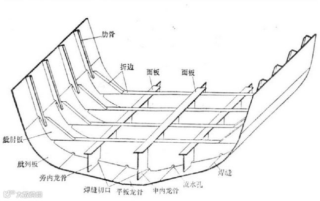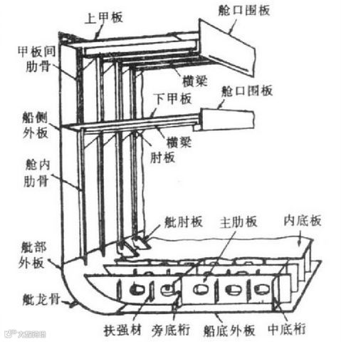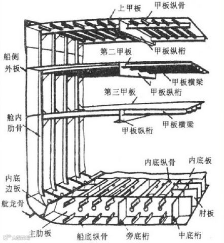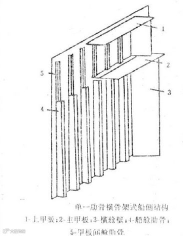 另外在主船体一部分采用横骨架式,另一部分采用纵骨架式的船体骨架型式也叫混合骨架式。