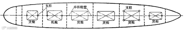 大型的油船设 2 一 3 道纵舱壁,横向分成 3 一 4 个货油舱。
