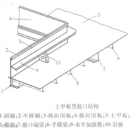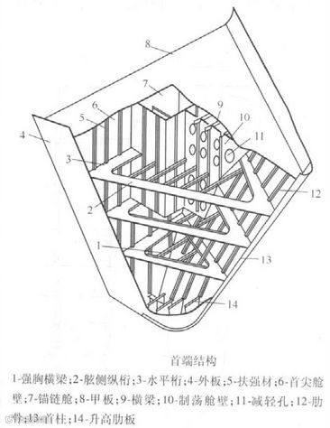 上层建筑的结构与主船体内相应的板架类似,也是由围壁板、甲板、横梁、肋骨、甲板纵骨、甲板纵桁和围壁扶强材等构件组成。