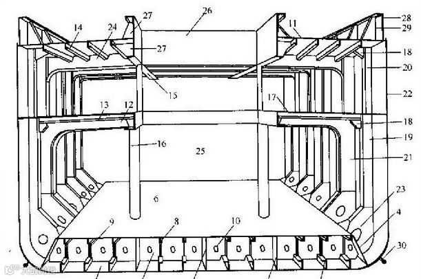 甲板和船底的中线面上还装有高大的制荡纵桁。