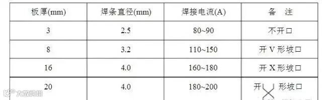该电流为平焊位置焊接,立、横、仰焊时焊接电流应降低10~15%;>16 mm板厚焊接底层选φ3.2 mm焊条,角焊焊接电流应比对接焊焊接电流稍大。