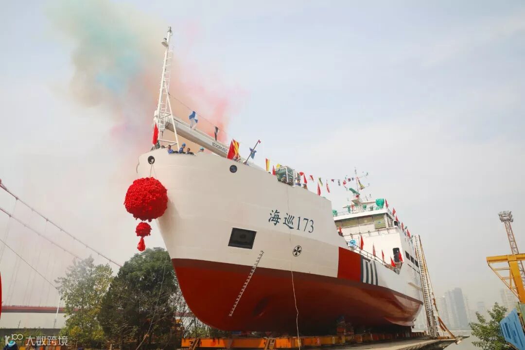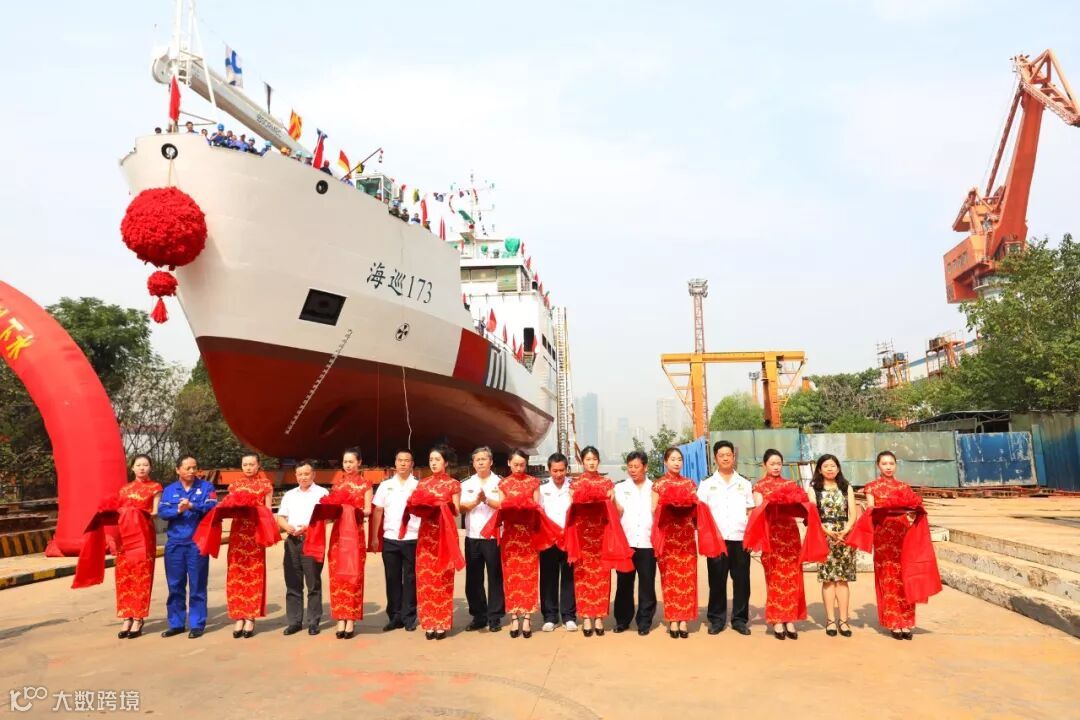 9月26日上午9点58分,由武船集团船舶公司为广东海事局建造的2000吨大型航标船在武昌总部顺利下水,广东海事局局长陈毕伍、南海航海保障中心书记肖明、广东海事局基建装备处处长李思强、广州航标处处长李忠、中船工业第七〇八研究所主任助理于再红、中国船级社武汉分社副总经理杜海根、武船集团总经理梁师清为广东海事局大型航标船“海巡173”轮下水剪彩,广东海事局局长陈毕伍行掷瓶礼。