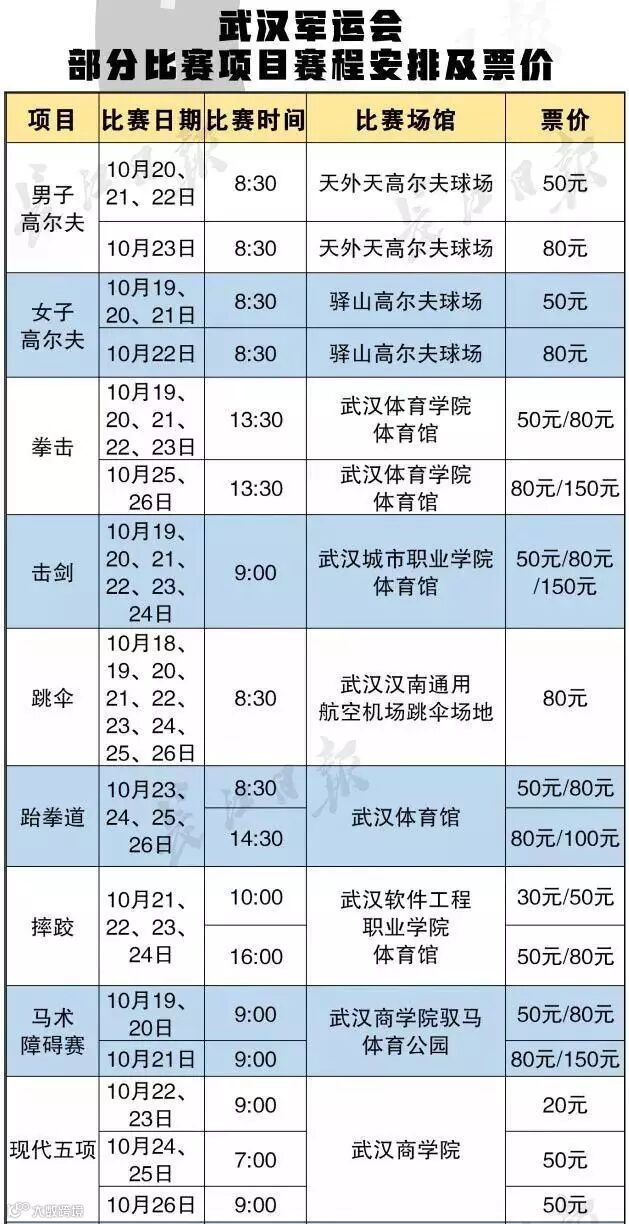 一图带你看懂军运会赛程