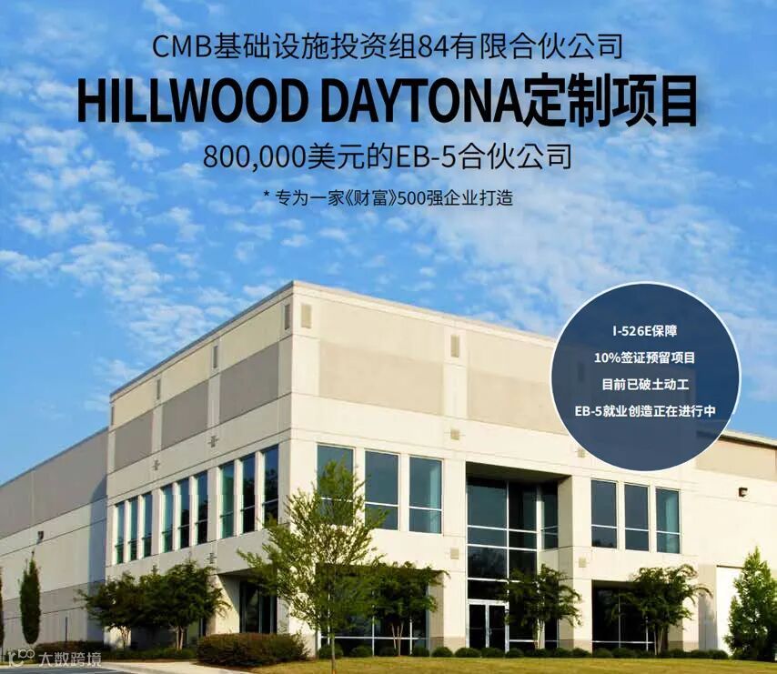 2.EB-5投资移民:投资80万美金到指定的目标就业区域(TEA)即可获得绿卡,对申请人无经商背景,无语言,无学历,无自身成就等要求的种种优势,是国人主流的移民美国方式。其中预留签证类别(乡村、高失业地区、基建):目前不会产生排期,但随着申请人数增加,若每年申请量大于预留签证的配额,未来可能也会产生排期的情况。(美国EB-5投资移民新项目:免排期的CMB组84 Hillwood Daytona定制物流项目)