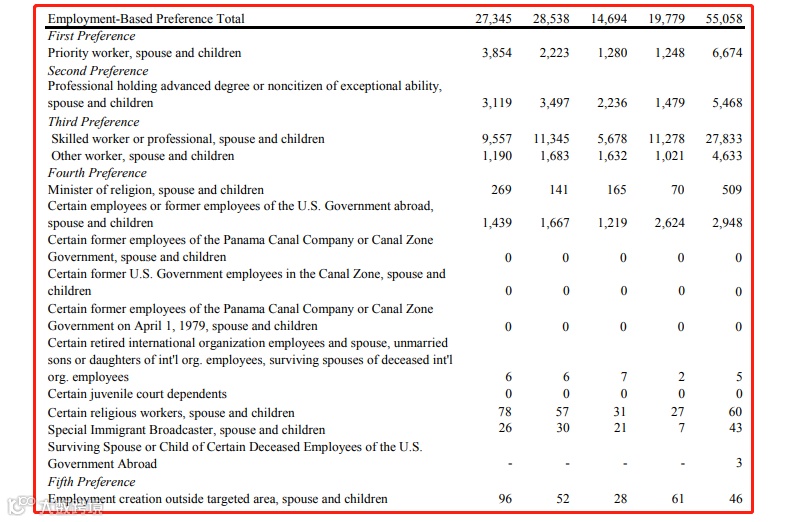 这一数据代表了EB-1类是中国众多有才人士携带家人拿绿卡的高效途径。同时,作为职业移民类别中的第一优先,它也是美国移民局最看重的、配额最多的项目之一。