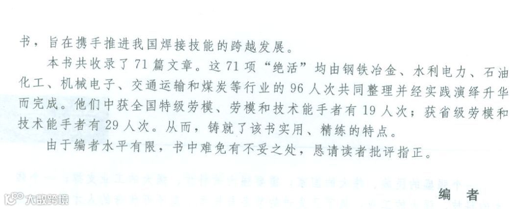 我国拥有百余万名焊工,号称焊接大国。能用高超的焊接技能或技术解决焊接实际难题并创适奇迹的人虽数以万计,但焊工作为焊接工程的主角,在焊接已经渗透到制造业的各个领域,并直接影响到制品的质量、可靠性和寿命以及生产成本、效率和市场反应速度的今天,仍显人才匮乏和跟不上发展的需求。为此,湖北省职工焊接技术协会和化学工业出版社凭借着热情和智慧独辟蹊径推出该书,旨在携手推进我国焊接技能的跨越发展。
