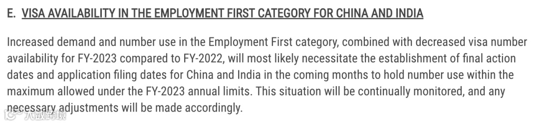 此外,美国国务院预测,鉴于当前印度和中国的EB-1申请数量激增,预计印度和中国的EB-1申请会在接下来几个月中出现排期。