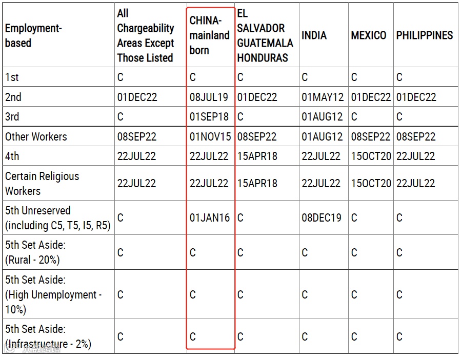 •EB-5(预留类别:乡村,高失业率地区以及基建项目),无排期。
