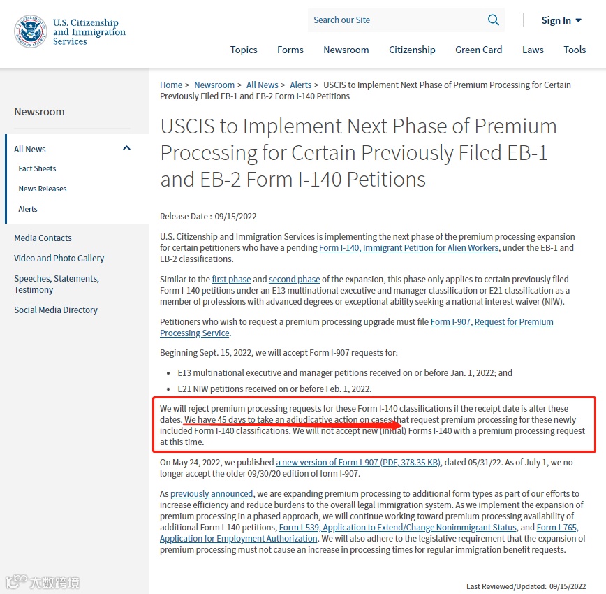 从2022年9月15日起,移民局将会开始接受以下两种满足要求的PP加急服务申请: