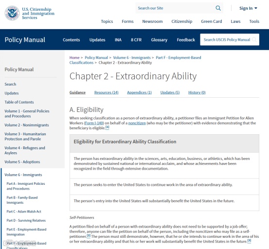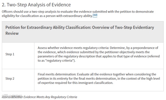 官网对申请条件描述是比较模糊,并不好理解,接着我们看一下移民官审核EB-1A的申请的两步法。