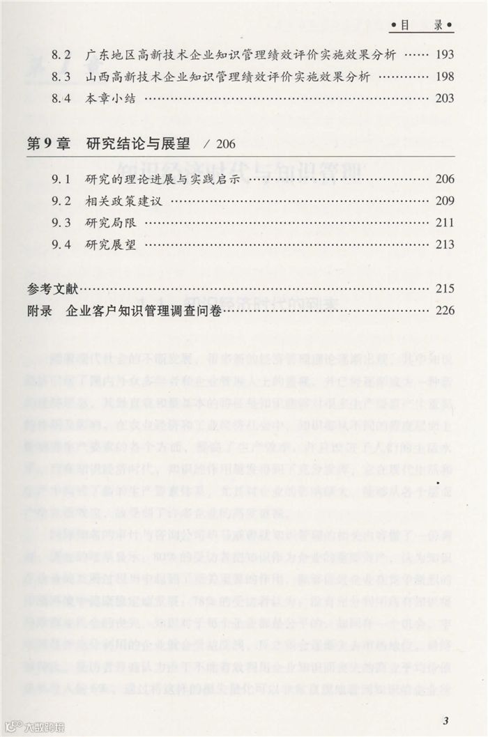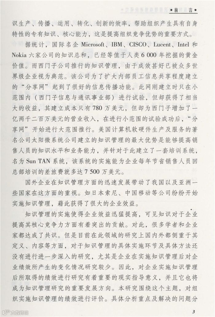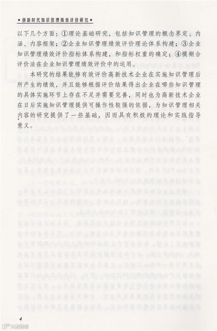 《创新时代知识管理绩效评价研究》本书一共分为9章节,第1章知识时代与知识管理;第2章相关理论基础;第3章数据处理方式;第4章文献综述;第5章知识管理绩效评价指标体系的模型构建;第6章阅卷设计、样本数据收集与分析;第7章不同行业的高新技术企业知识管理绩效实施水平分析;第8章北京、广东与山西三个地区高新技术企业的知识管理绩效效果评价;第9章研究结论与展望。