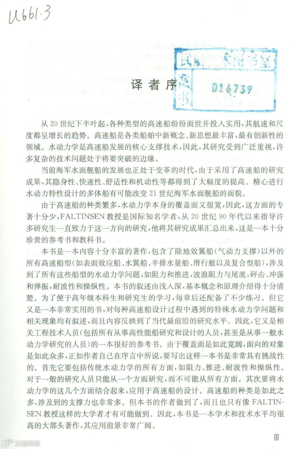 海上高速船水动力学讨论了三类主要的海上高速船:排水型船、气垫船和水翼艇。本书基于理性的和简化的方法广泛地讨论了波浪环境、阻力、推进耐波性、波浪载荷和操纵性。书中重点强调了海上高速船水动力学和自动控制及结构力学的联系;详细描述了喷水推进,并且讨论了水深对余波、阻力、升沉和纵倾的影响。章节标题包括阻力和余波、砰击、气垫支撑的舰艇(含对气垫中波激共振的详细讨论)和水翼艇。书中列有大量插图、示例和习题。