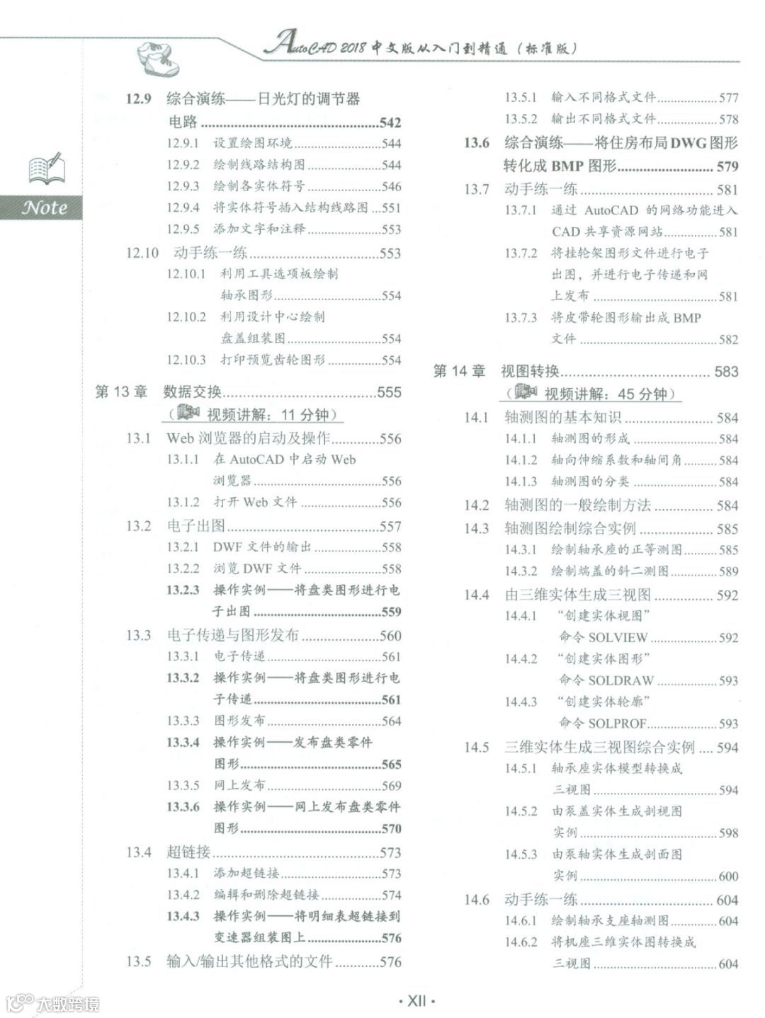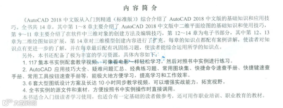 《Auto CAD2018中文版从入门到精通(标准版)》综合介绍了Auto CAD 2018 中文版的基础知识和应用技巧。全书共14章,其中1~8章主要介绍了Auto CAD 2018 中文版中二维平面绘图的基础知识和使用技巧,第9~11章主要介绍了软件中三维对象的创建方法及编辑技巧,第12~14章为电子书部分,其中第12、13章为二维绘图知识扩展,第14章对三维模型创建内容进行扩充。每章的知识点都配有案例讲解,使读者对知识点有更进一步的了解,并在每章最后配有巩固练习题,使读者能综合运用所学的知识点。