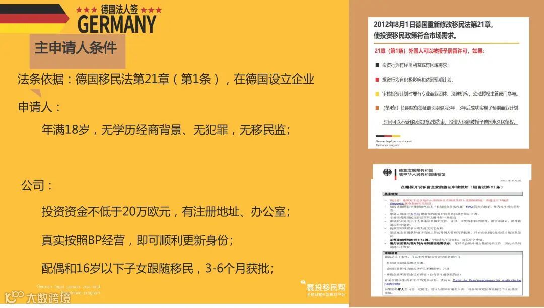 1、法人签申请的前提是需要在德国当地成立公司,这个过程需要委托专业的律师和税务师协助才能完成。