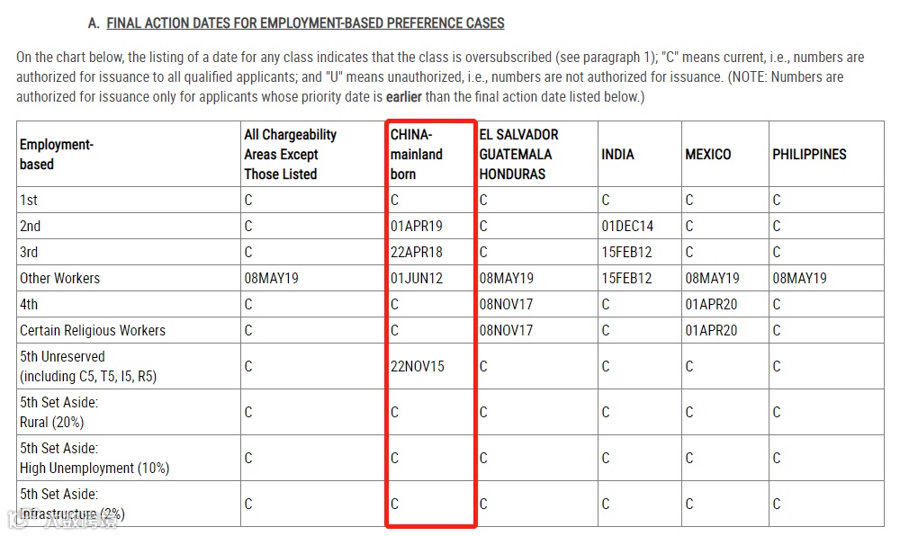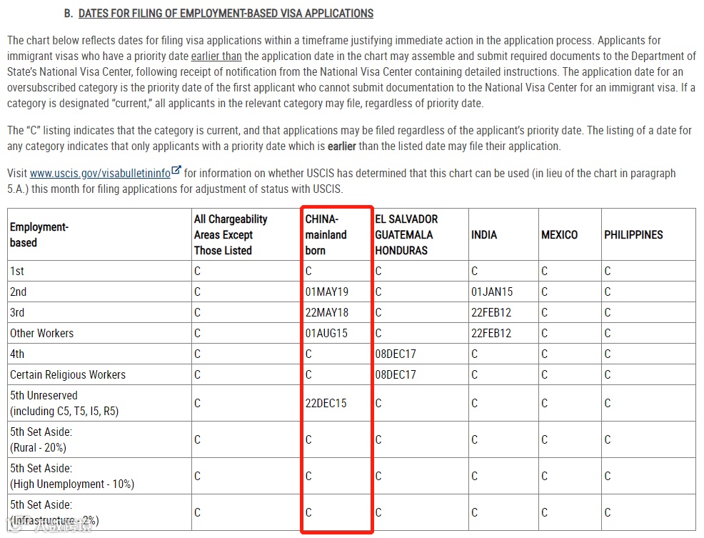 要注意的是此次排期安排仅为美国国务院安排,表B是否能开放使用还需等待几天看美国移民局表B的具体安排。