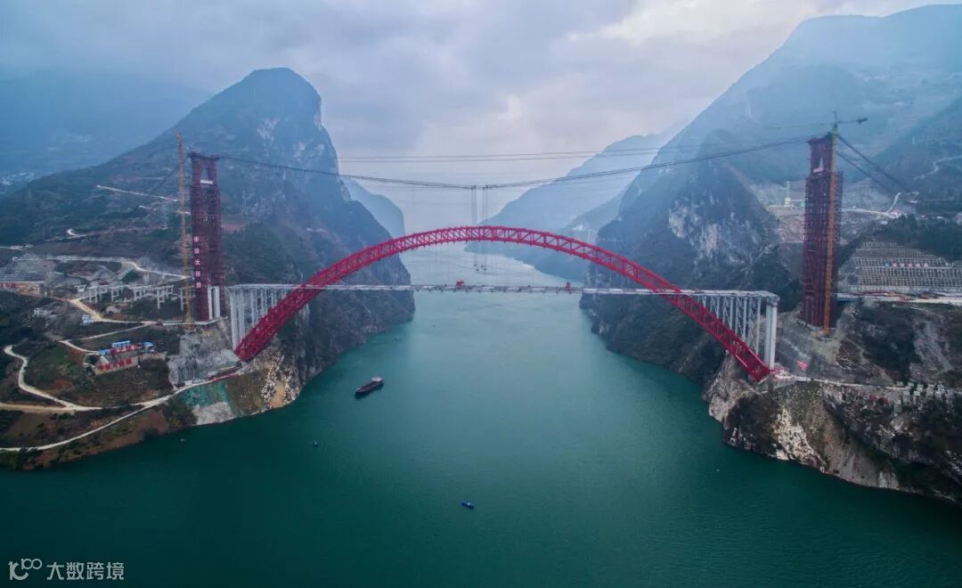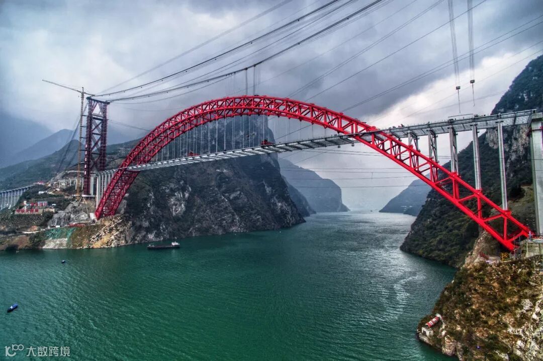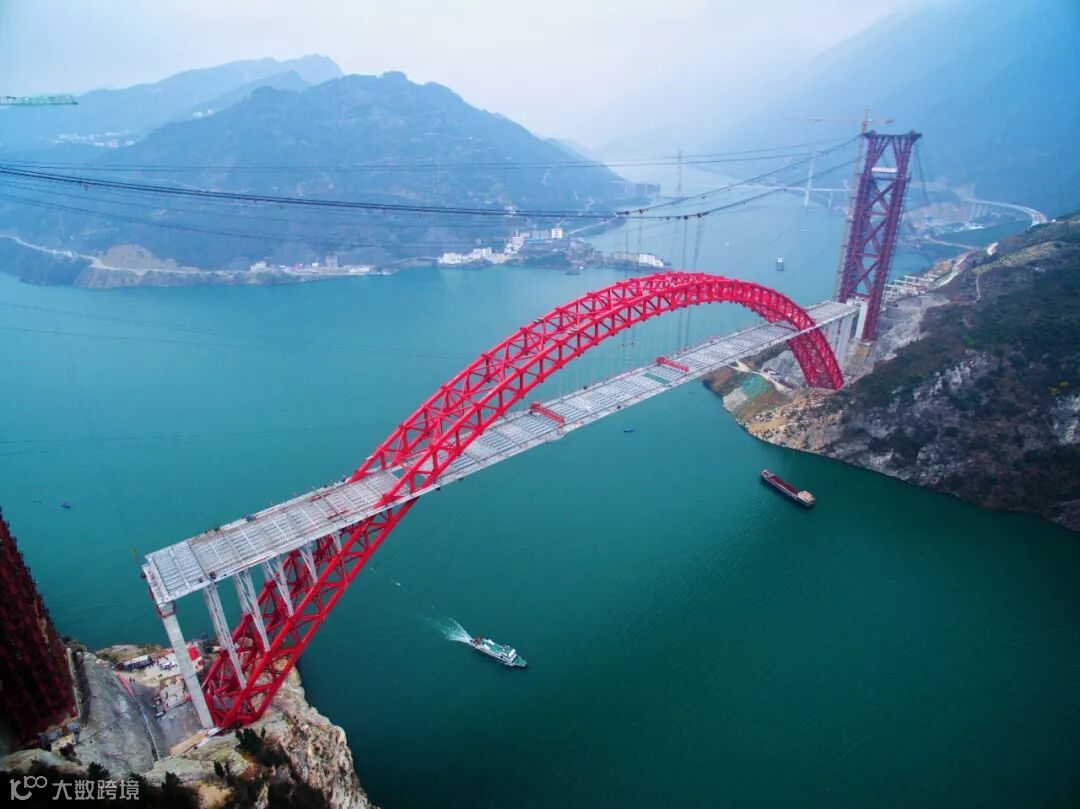 香溪长江公路大桥位于湖北宜昌秭归兵书宝剑峡峡口,桥梁主跨531.2米,桥面宽32.3米,是目前世界最大跨度的钢箱桁架推力拱桥,大桥在今年5月22日实现了主拱合龙,8月30日拱上立柱吊装完成,随后开始架设钢主梁,主梁架设历时约4个月。本次合龙段施工包括2根主纵梁、7根中纵梁、8根横梁、2块人行道板施工。