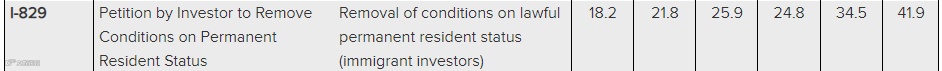 4、I-829,2022年审批耗时中位数为41.9个月,与审批进度表中实时给出的80%的案子耗时57个月,还算吻合。