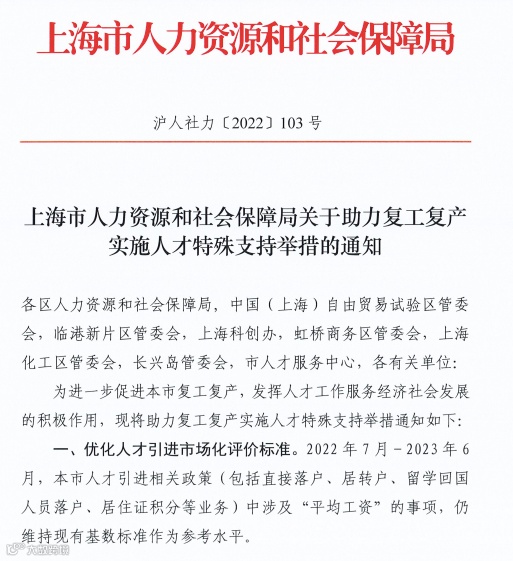 随着上海疫情的结束、复工复产的开启,6月7日上海市人力资源和社会保障局发布《上海市人力资源和社会关于助力复工复产实施人才特殊支持举措的通知》。其中的一条内容引起很多留学生和家长的关注——