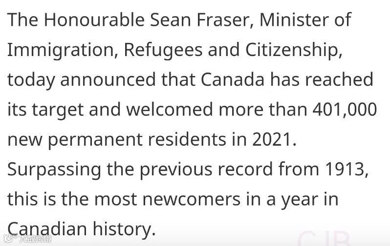 当地时间2021年12月23日,加拿大移民局官宣,今年已经实现年度目标吸收了401000新移民,这是加拿大移民历史上第二次达到40万新移民人数。