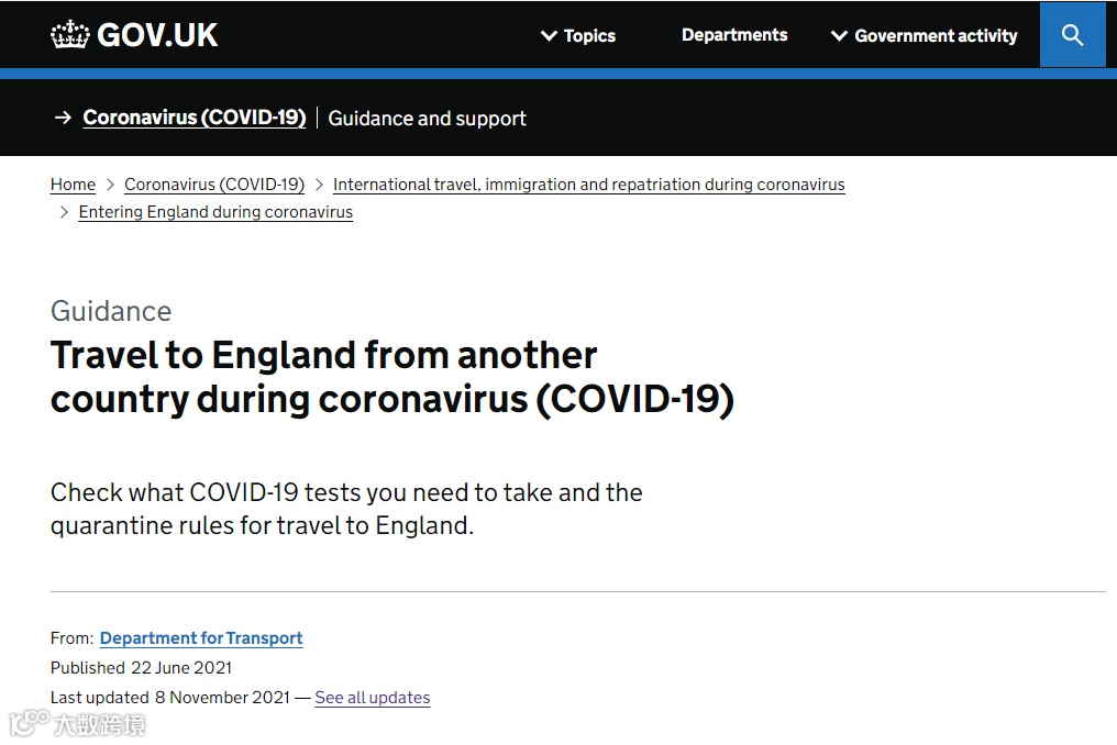 英国当地时间11月8日,英国政府在官方网站公布更新版的国际旅行和入境规则,明确宣布:11月22日早上4点起,承认世界卫生组织的紧急使用新冠疫苗名单上所有疫苗的完成接种者,入境英国前无需进行病毒检测,入境以后只需进行第二天的测流检测,呈阴性的将无需隔离。