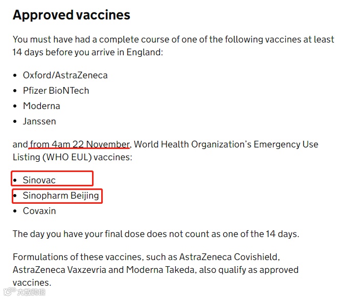 7.11月22日起,英国承认中国疫苗,入境后可免隔离