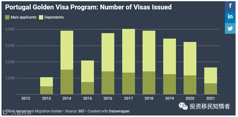 葡萄牙黄金签证:签证签发量