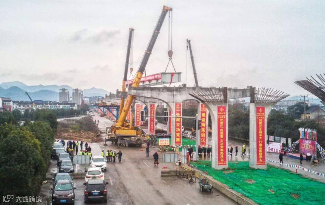 台州路泽太高架TJ03标钢板梁首片梁架设成功
