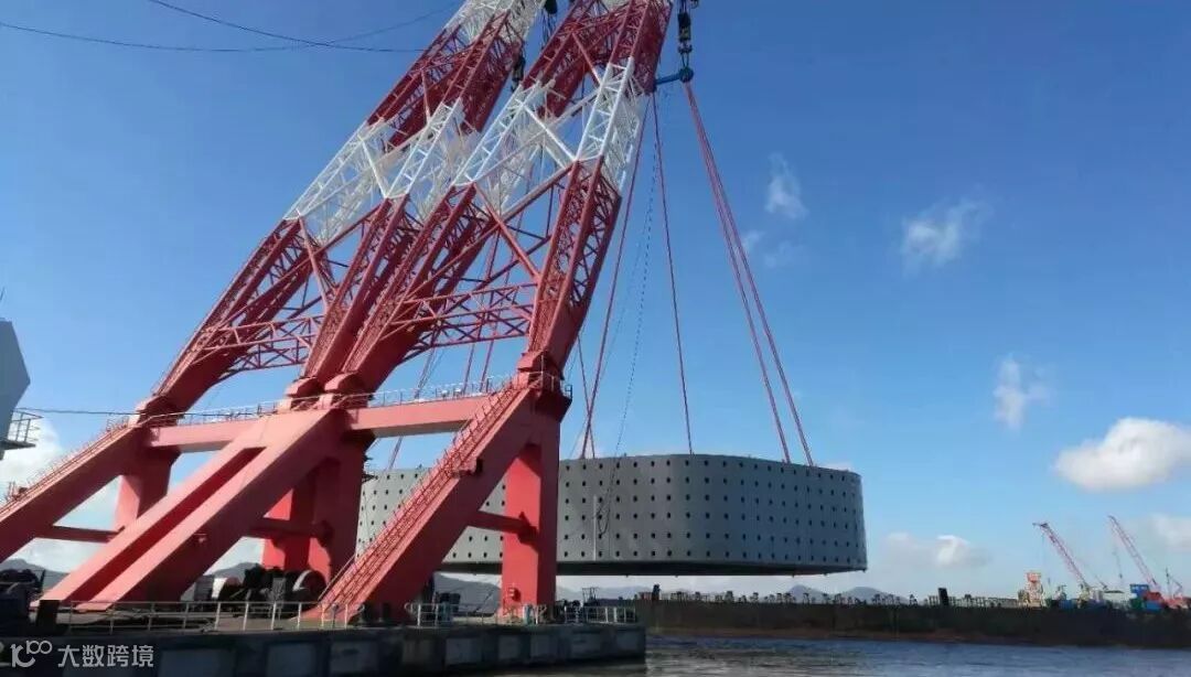 宁波舟山港主通道内层防撞钢套箱吊箱完成