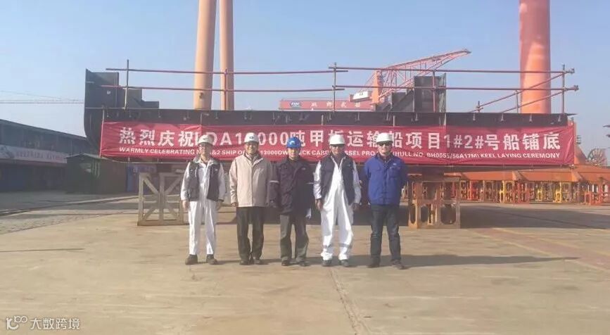 由武船集团海工院总包,双柳武船承建的新13000吨甲板运输船,按照原定计划节点于2018年12月18日上午10时18分在双柳船台成功举办1#2#船铺底仪式。