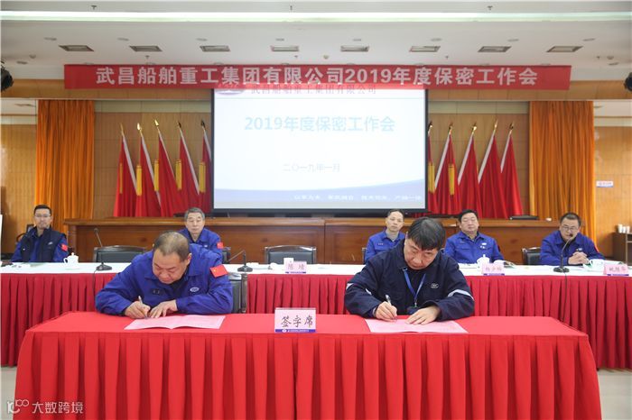 会议首先传达了中船重工集团公司关于驻外机构管理、外事管理方面的新要求,听取了公司2018年安全保密工作总结与2019年安全保密工作要点,以及认定复查整改完成情况与下一阶段工作部署。随后,陈埥与部分单位负责人现场签订了2019年度安全保密责任书。
