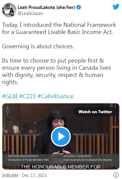 2021年12月16日,国会议员Leah Gazan提出了C-223法案。