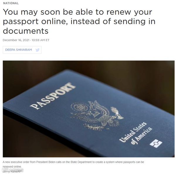 上周签署的一项新的行政命令中,有一点是要求国务卿建立一个系统,让人们可以在网上更新他们的护照,而不必邮寄任何实体文件。