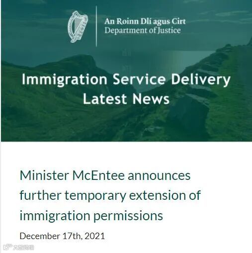 6.爱尔兰居留许可再次延期,至2022年5月31日