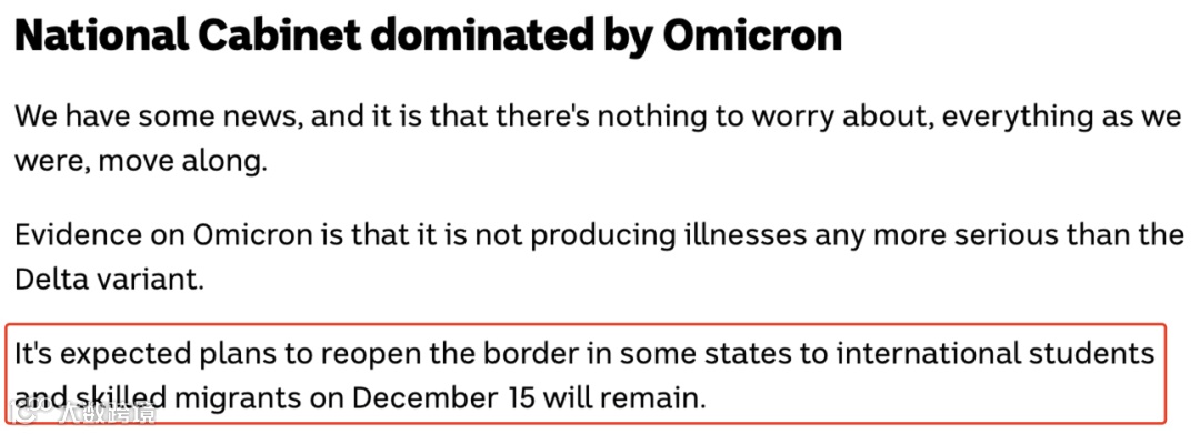 在今天的内阁会议后,澳媒表示:澳洲部分地区将于12月15日按计划对留学生、技术移民等签证持有者重新开放!!一切照旧!!