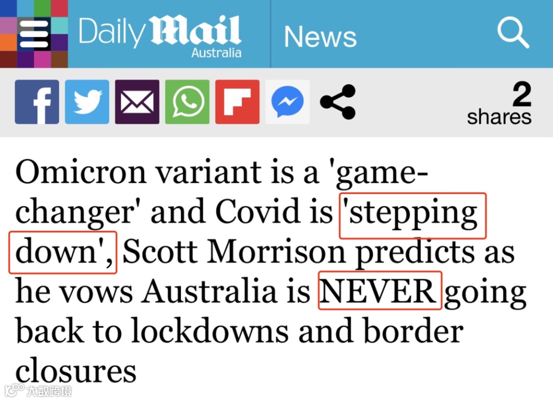 随着世界试图从两年的疫情中恢复过来,Omicron变体病毒可能会成为全球的“游戏规则改变者”,莫里森表示:“澳洲不会再封城和关闭边境。我们将继续前进,与这种病毒共存!”