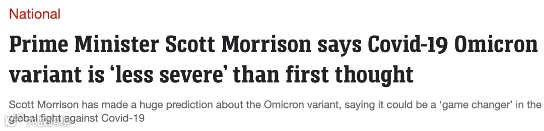 莫里森在今早接受澳媒采访时说道:决定12月15日如期开边境的原因一是因为Omicron变体病毒没有最初想象的那么严重。现在可能是该病毒正在“逐步减弱”的早期迹象。