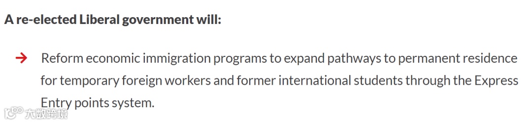 自由党承诺在五年内花费$4.289亿加元,改革经济移民计划,通过快速移民计划(Express Entry)扩大临时外劳和国际留学生获得永久居留权的途径。