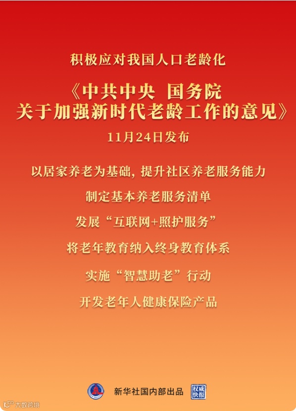 《中共中央国务院关于加强新时代老龄工作的意见》2021年11月24日发布,这一文件发布,代表着政府高度重视老年人的问题,并认为这一问题需要全面性的解决方案。