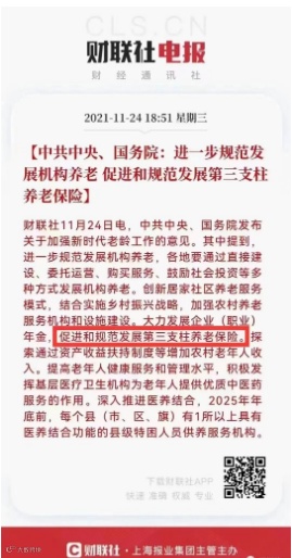 近期国家层面密集出台政策:如“规范发展除社保、企业年金之外的第三养老保险”、“积极培育银发经济,发展适老产业”、“鼓励低龄老人再就业”等等。