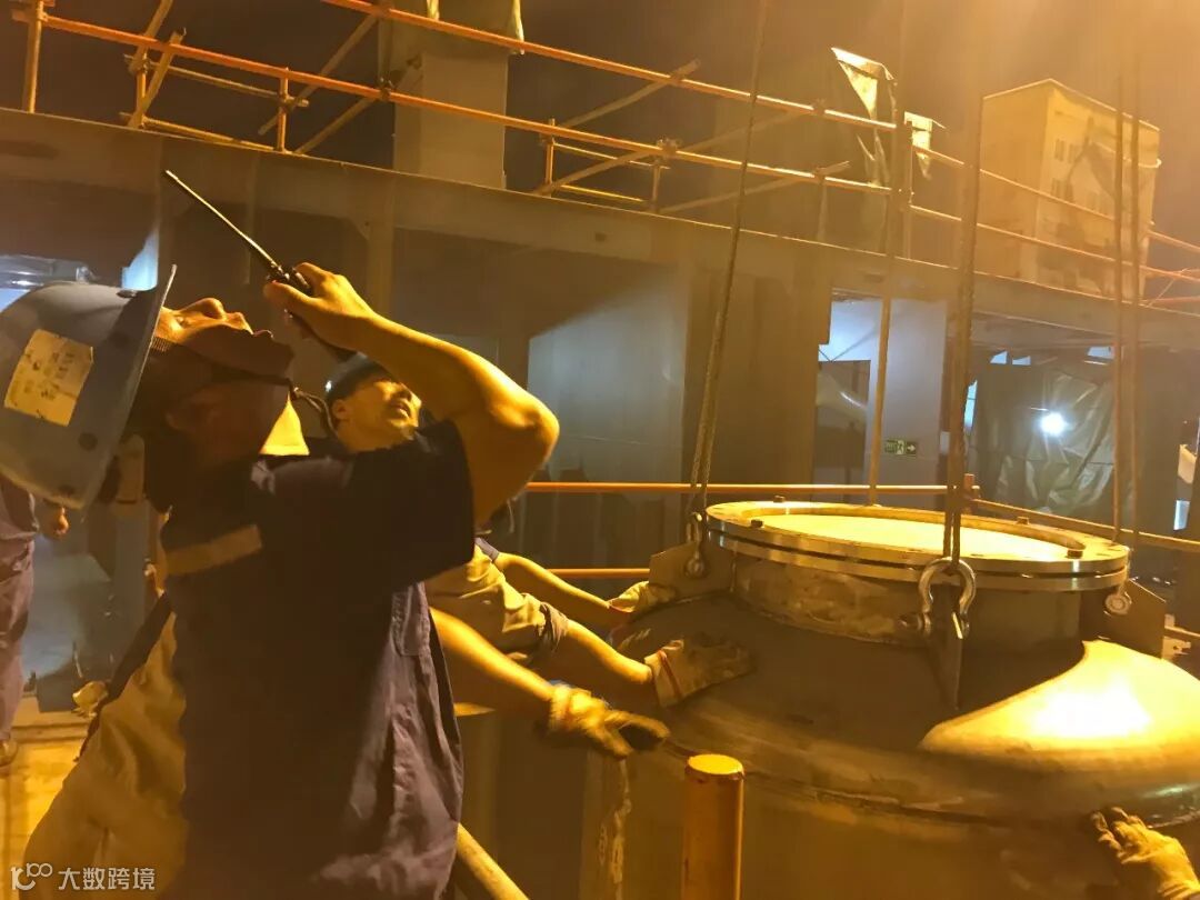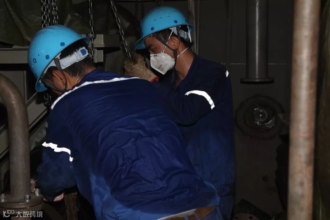 船舶公司舾装起重班组吊装某重要设备加班至凌晨: