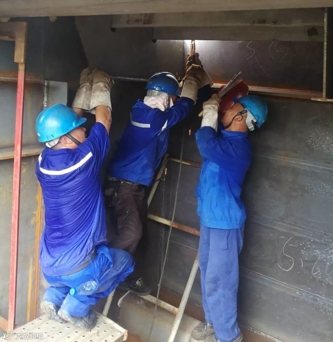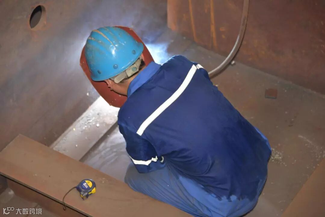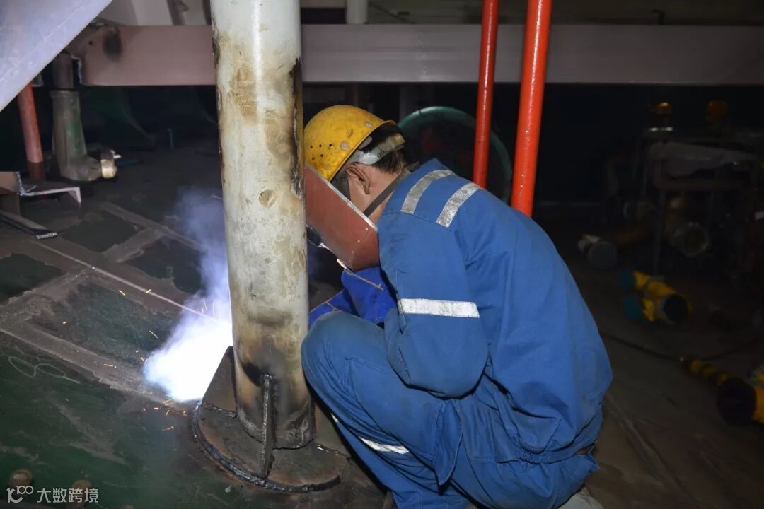 船舶公司现场作业的船台电焊工: