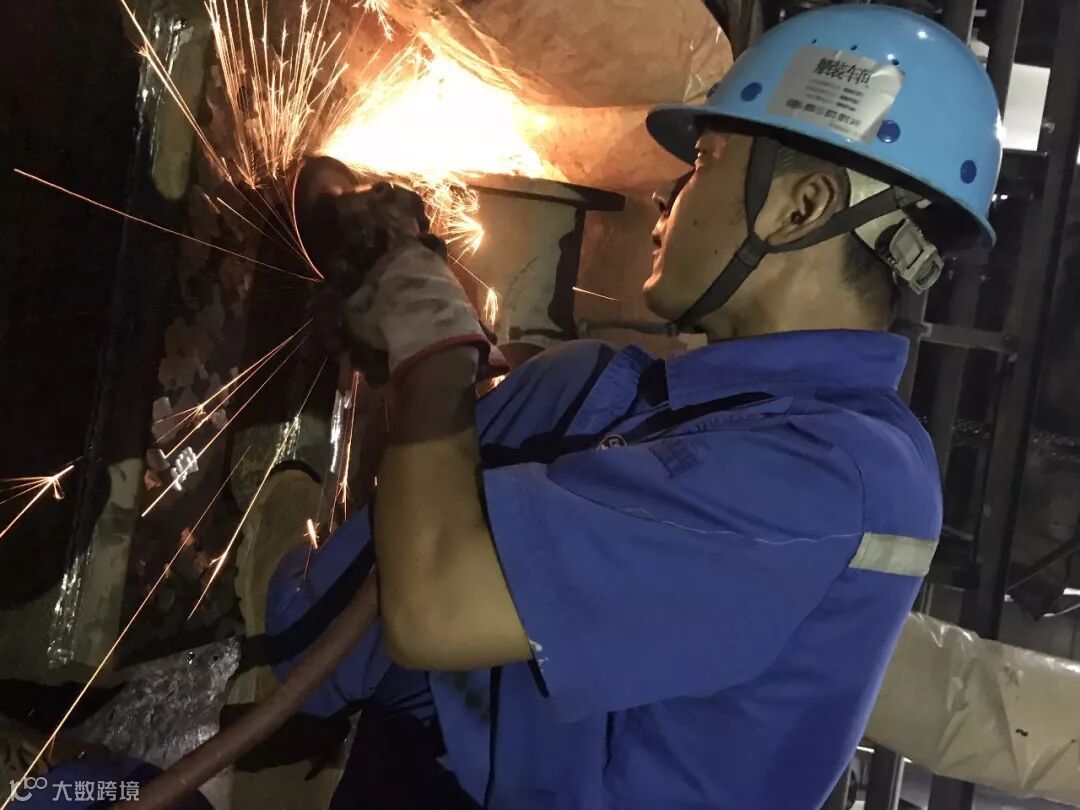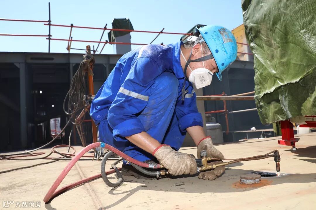 船舶公司舾装管系工烈日下动火作业—开孔: