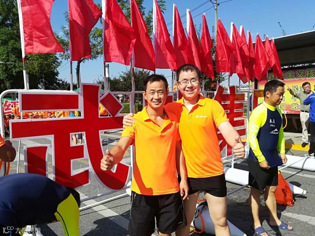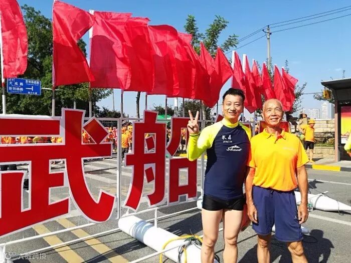 虽然酷暑难耐,但是没有挡住武船游泳健将们的热情,到达现场后有的队员开始准备装备,热身活动;有的队员在“武船集团”的铭牌前牌照留念;有的队员则在回忆自己第一次参加渡江节的情景,不禁感叹岁月飞逝。