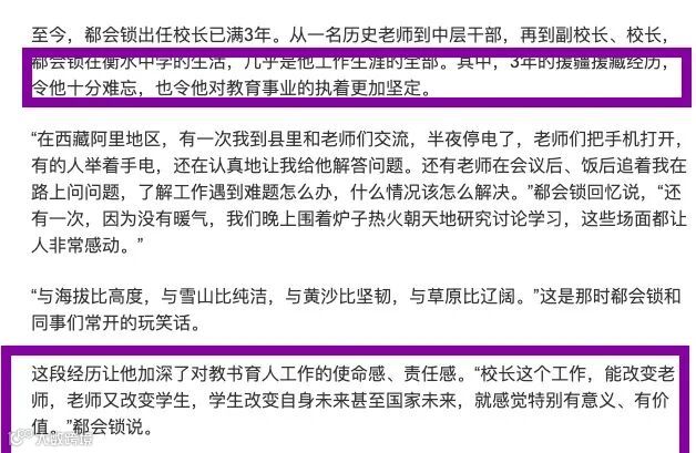 在事发一周以前,郗校长还在接受主流媒体的采访,渲染自己在西藏支教的经历有多么不易和感人。