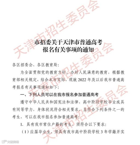 8月16日,天津教育招生考试局正式公布了《市招委关于天津市普通高考报名有关事项的通知》(下称《通知》),该通知明确了“在天津参加高考需要同时具备“天津户籍+天津高中三年学籍”两个条件,这意味着天津高考门槛大大提高,“高考移民”的漏洞将被有效防堵。