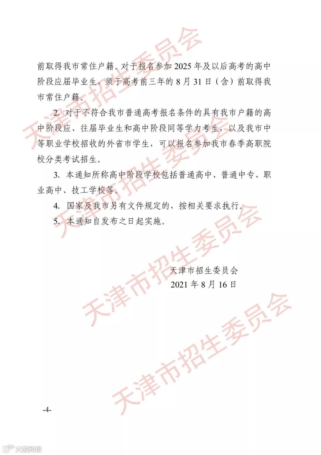 第四、天津户口+外地初中毕业生,如果在外地上了高中,需要最多六年以后才能参加天津高考。
