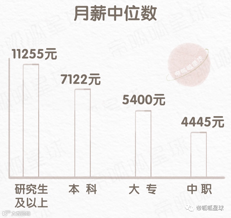 中位数是5400元,是研究生的一半,本科生的三分之二。