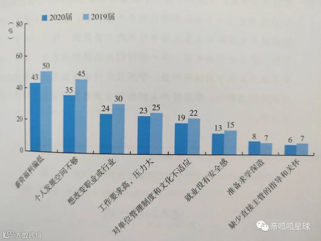 离职原因排名靠前的是:工资低;发展空间不够;工作压力大;就业没有安全感。