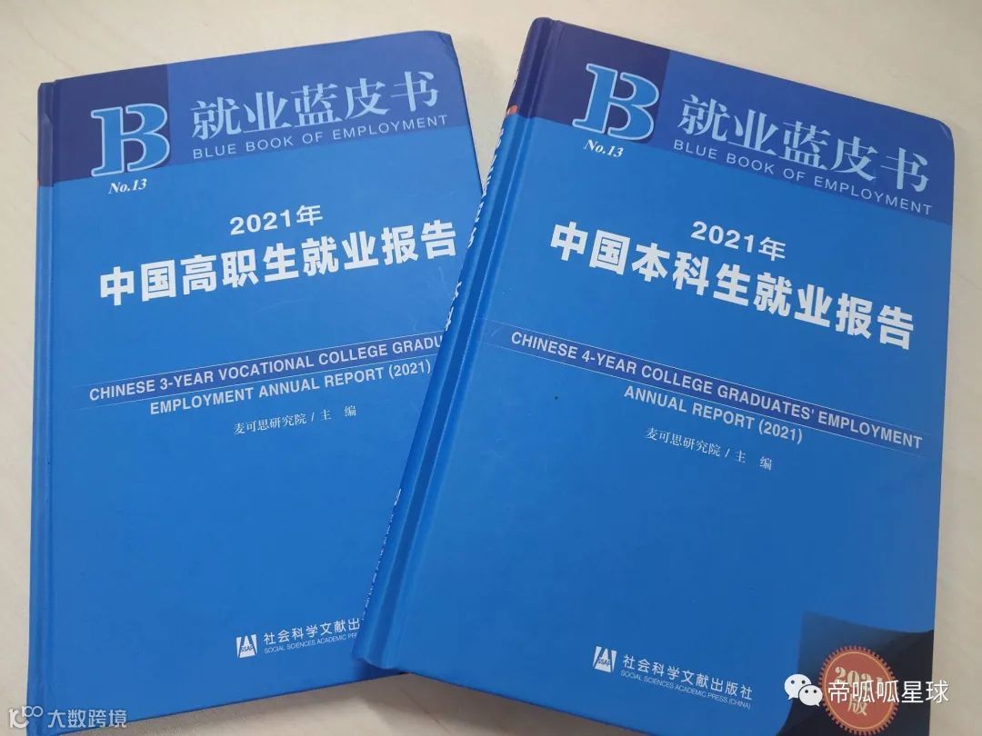 我专门去找到了中国社科院的合作机构,麦可思研究院发布的2021年的就业蓝皮书,里面有两本,一本是《中国本科生就业报告》,一本是《中国高职生就业报告》,正好做个对比。